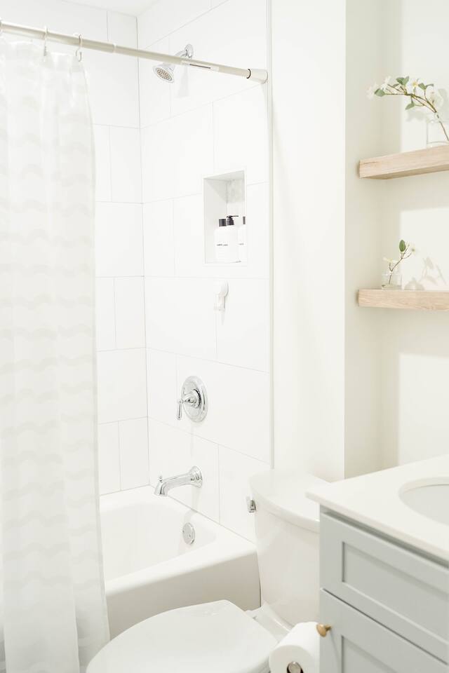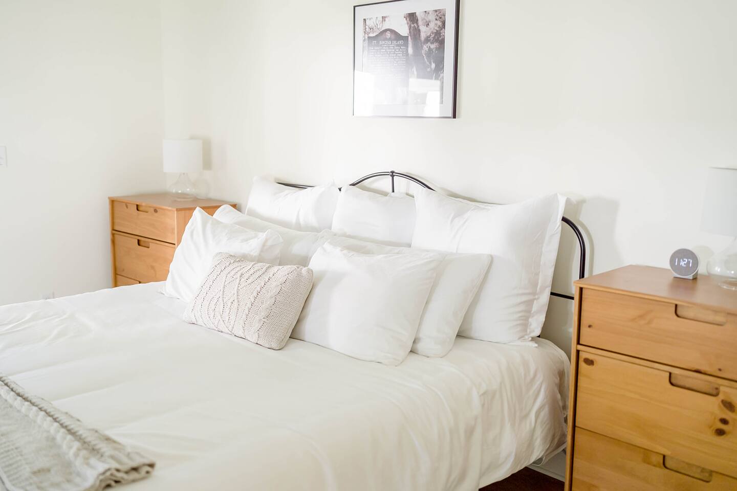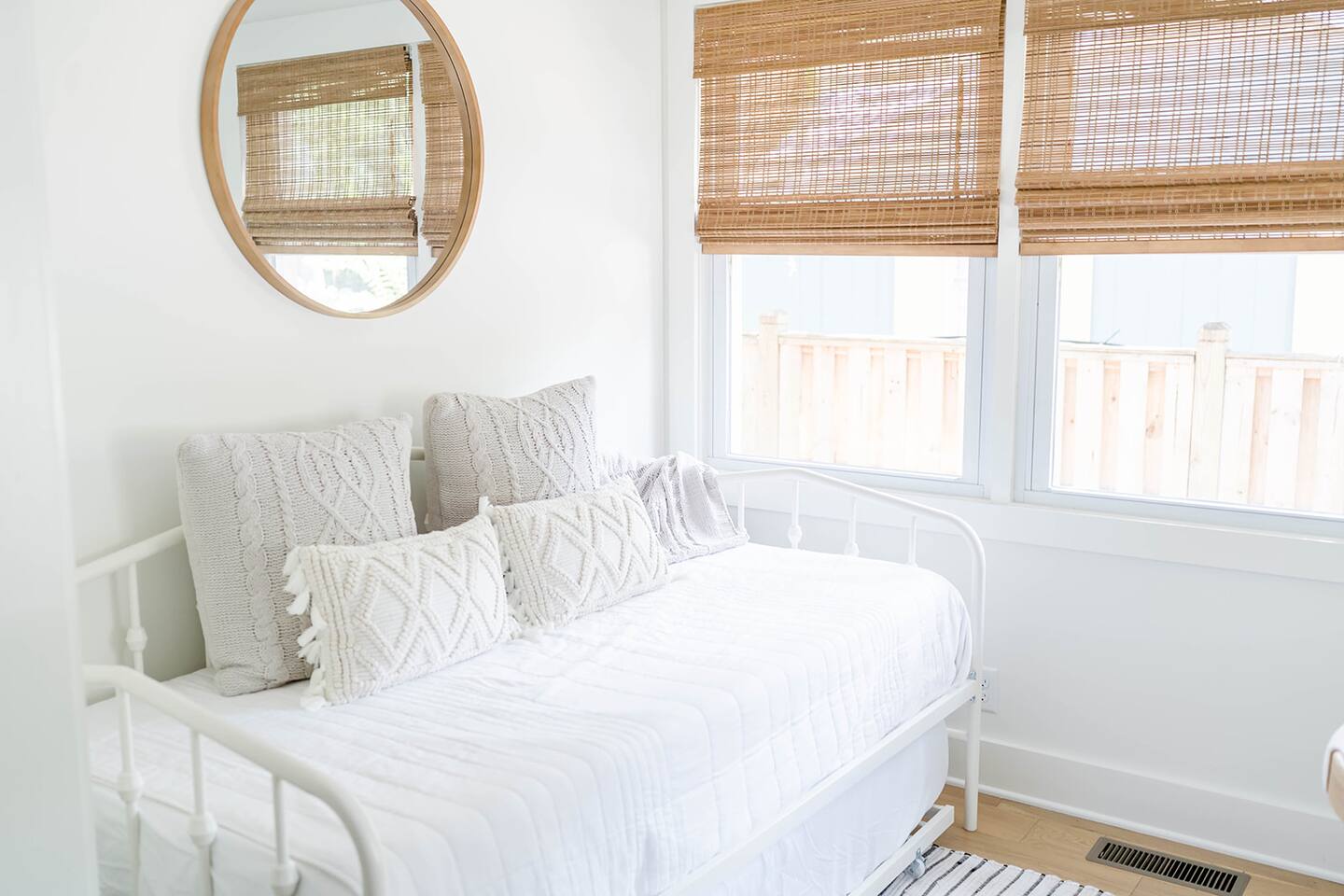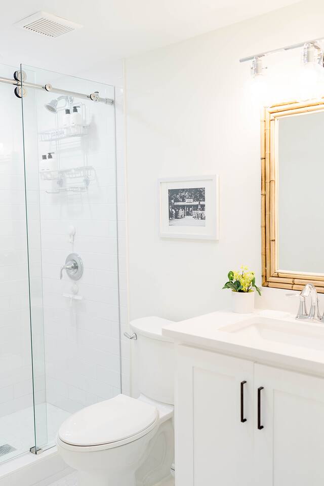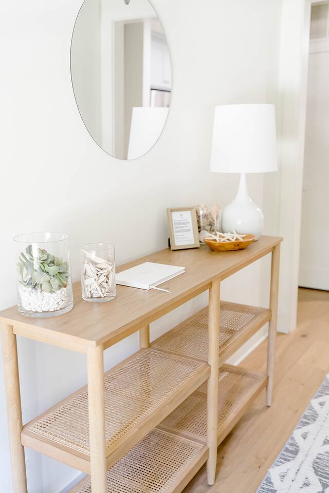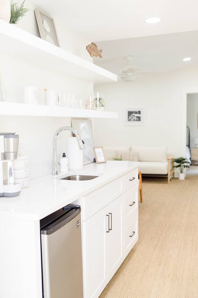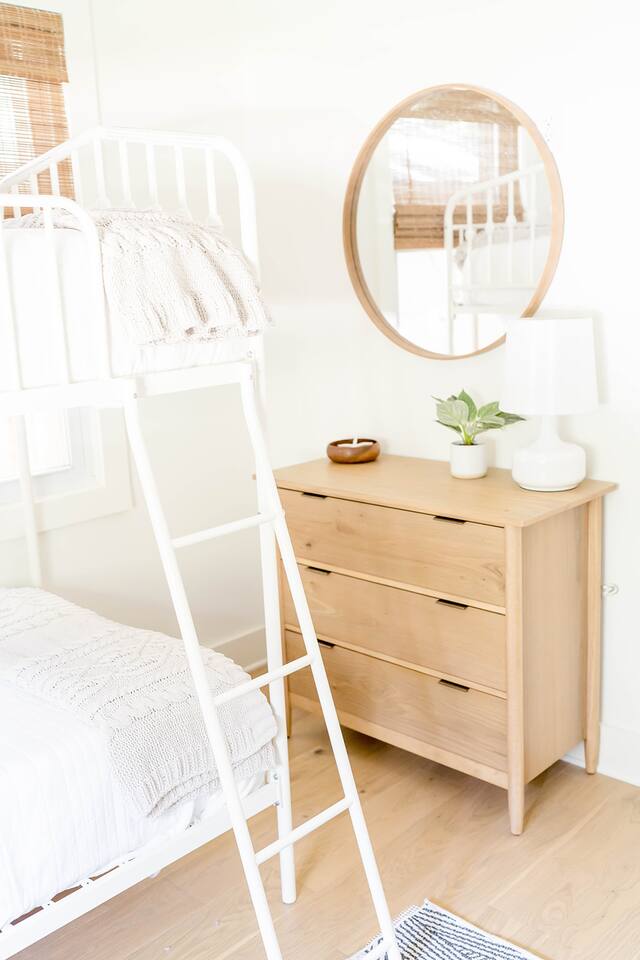 The Davis is perfect for families of all generations, designed to meet every need and create lifelong memories! With a keen eye for design, The Davis offers a 'gramable serene and chic retreat, styled in breathtaking minimal modern coastal aesthetic. Enjoy the charm of vintage local photography that revives sweet nostalgia. Our properties feature cozy mattresses, 100% cotton linens, fluffy down pillows, and proper fitted sheets—no hotel shortcuts here! Guests with littles? We've got you covered! Access 2 Graco Pack-n-Plays, a collapsible Ingenuity highchair, 2 booster seats, and a baby bathtub. Set up the Pack-n-Plays in either king bedroom or their cozy closets (aka baby nooks) with outlets for monitors, sound machines, and fans. Comfort for everyone! Front King: Stream with Roku TV, sleep soundly on the king bed, or the twin daybed with pull-out trundle in the sunny office space. Refresh in the large oversized shower and enjoy the spacious walk-in closet. Perfect for comfort and convenience! Bunkroom: Sleeps 4 in twin beds, perfect for kids or a gaggle of girls on a weekend getaway. Complete with children's books and games for fun and comfort! Middle Queen: Sleeps 2 in a comfy queen bed. Your perfect cozy retreat awaits! Rear King: Relax with Roku streaming TV, sleep soundly on the king bed, enjoy the cozy conversation area, and refresh in the large oversized shower. Plus, take advantage of the spacious walk-in closet! Perfect for unwinding! Guest House: Sleeps 2 in the cozy queen bed and 2 more on the comfy queen fold-down Crate and Barrel sofa bed. Whip up a treat in the kitchenette, complete with a coffee pot and wine tumblers. Indulge in the large, oversized shower for a refreshing experience! Kick back in the living room! Enjoy the Roku streaming TV and brand new Anabei sectional, perfect for cozying up and watching your favorite flicks in comfort. Dine in style! Enjoy sipping and nibbling at various spots: 4 barstools at the island, 8 at the oversized dining table, 6 on the back porch, plus additional seating for 6. Perfect for every meal! Party on the porch! Choose your favorite outdoor game and set up under the sparkling string lights or on the back lawn. Take a spin on the saucer swing for extra fun! Start your day right! Our kitchen offers complimentary beans from Wake Up Coffee Company. Fully stocked with a blender, panini press, coffee pot, tea kettle, stock pots, outdoor grill, and more. Cook up a storm! Indulge in luxury! Our bathrooms are stocked with all-natural, sustainable Public Goods products, including shampoo, conditioner, body wash, lotion, and hand soap. Pamper yourself! Laundry day made easy! Our laundry room is stocked with Public Goods products to keep your belongings fresh and clean. Rainy days? No problem! Dive into our stash of local books and games, perfect for guests of all ages. Fun and relaxation guaranteed! Don't see something? Just reach out and ask. We love ensuring every stay is 5-star worthy!